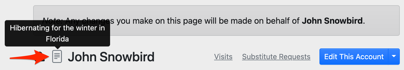 These notes are displayed on the adorer's Dashboard page by hovering over (or clicking) the notes icon.