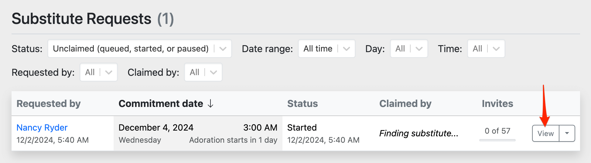 As an admin, you can assign outstanding substitute requests to an eligible adorer (e.g., non-blocked adorers not already signed up at that time).