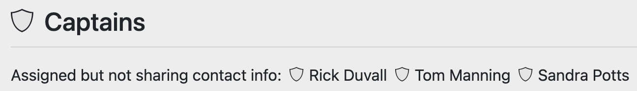 To see which assigned administrators and captains are not sharing their contact information, visit Admin » Captains.
