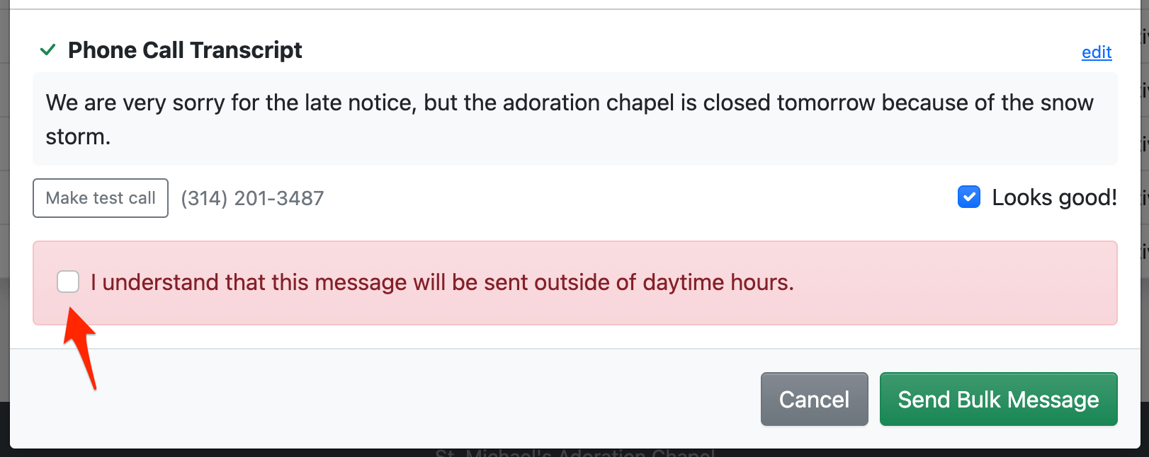 Administrators can send bulk messages to adorers anytime, even outside of daytime hours.