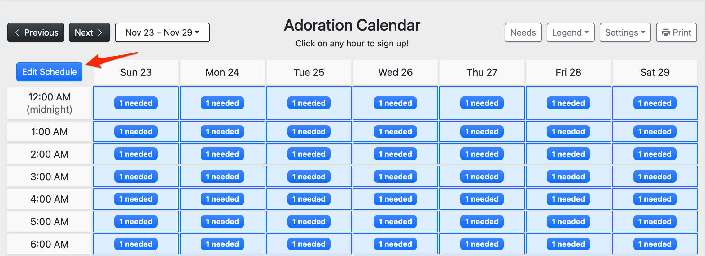 Editing each hour on the schedule one by one can be a tedious chore. Thankfully, you can edit multiple hours at once!