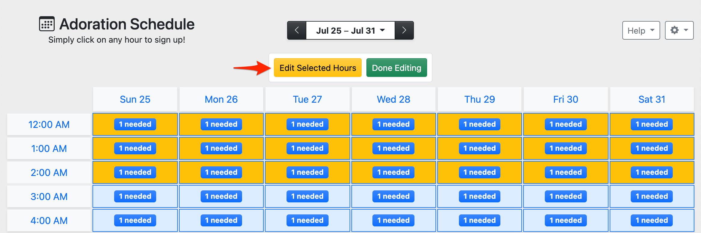 Once the desired hours are selected, click Edit Selected Hours.