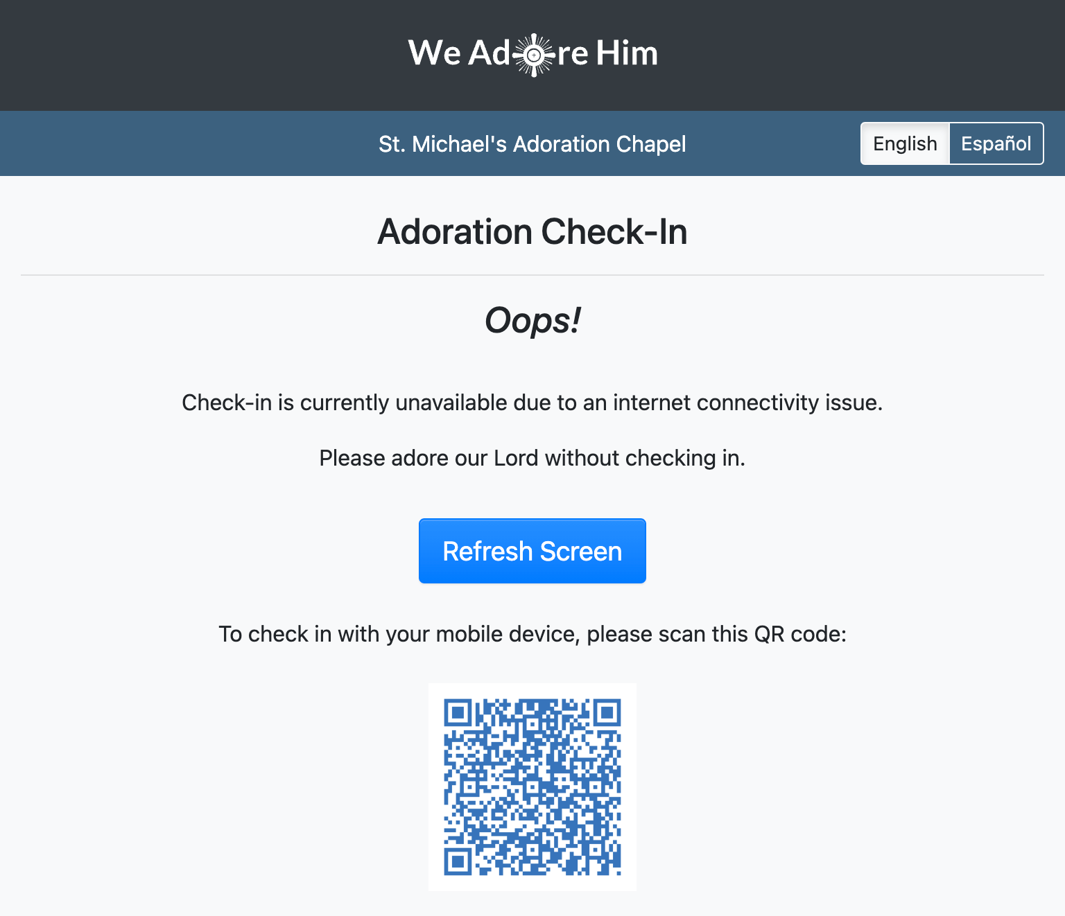 If the internet should go offline for any reason, adorers cannot check in via the tablet kiosk.
