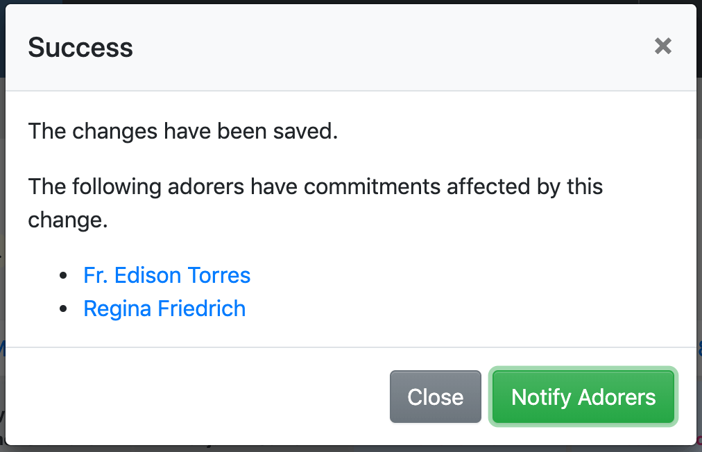 1. When you change the availability of an hour on the schedule, you can now easily notify adorers affected by the change: