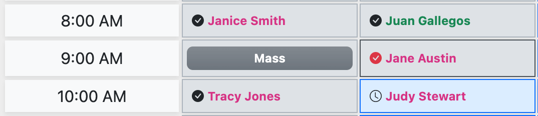 Thus, when viewing past hours on your schedule, it will be easier to solve questions like, "why were there no adorers on Sunday at 9:00 AM?" (Oh, right, that's when we have Mass!)