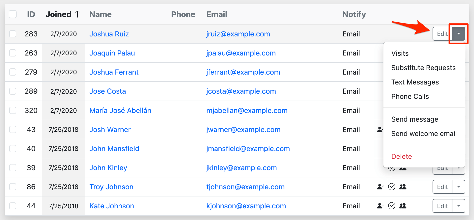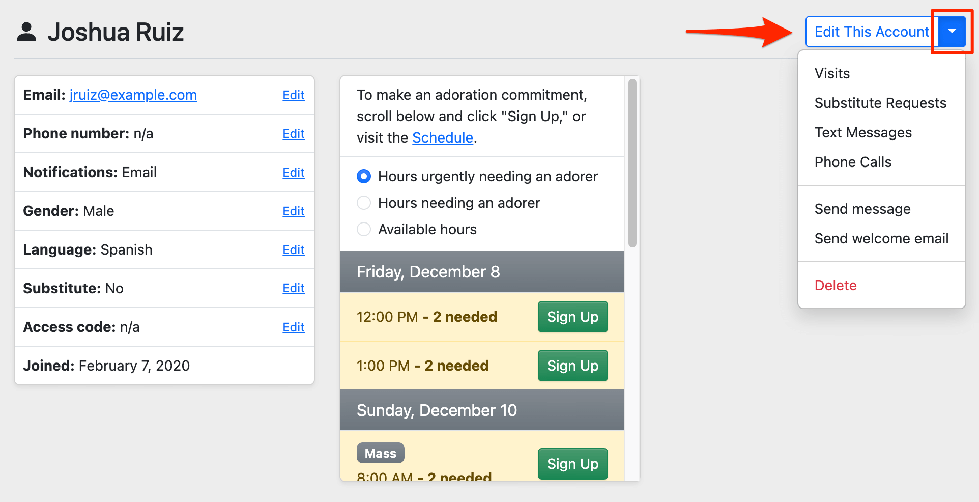 These links are also found on the Admin » Adorers page next to the Edit buttons.