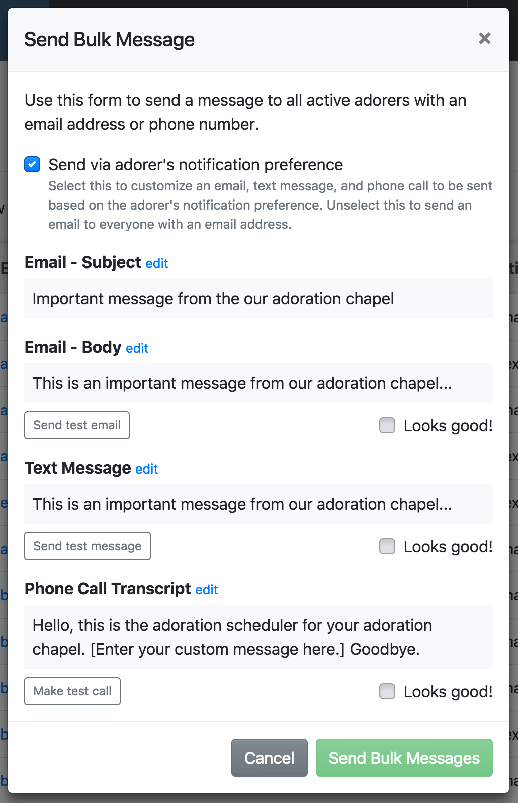 Now, when you go to "Send Bulk Message" on your Admin » Adorers page...