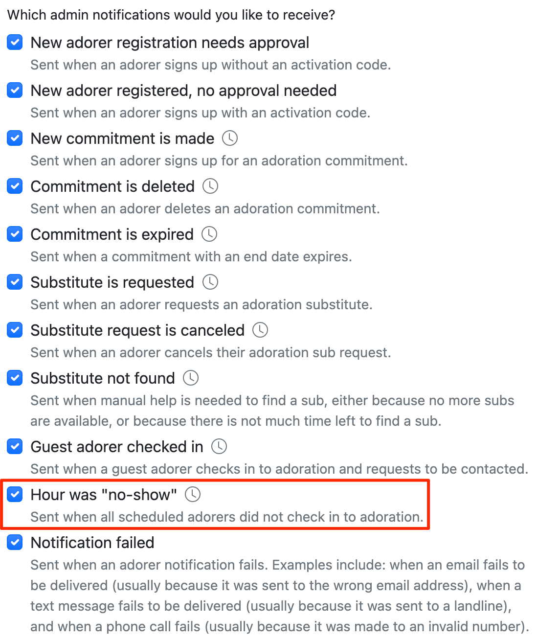 If none of the committed adorers for a particular hour actually check in to adoration, we flag that hour as a "no-show" hour.