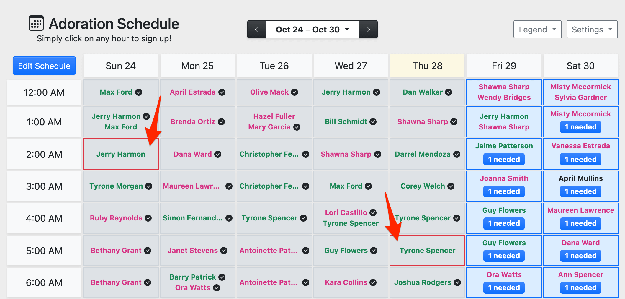 Of course, you could already do this by squinting at the Schedule page to discover which hours are full of adorer names without the little checkmark next to their name. 👀