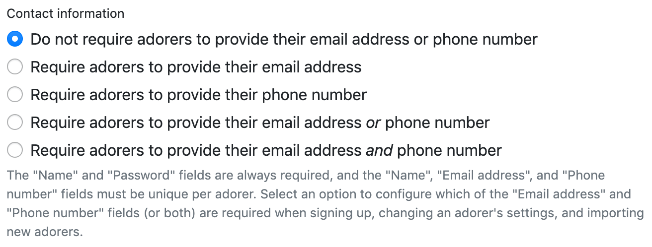 Or... what if you want to require adorers to provide both a phone number an email address?
