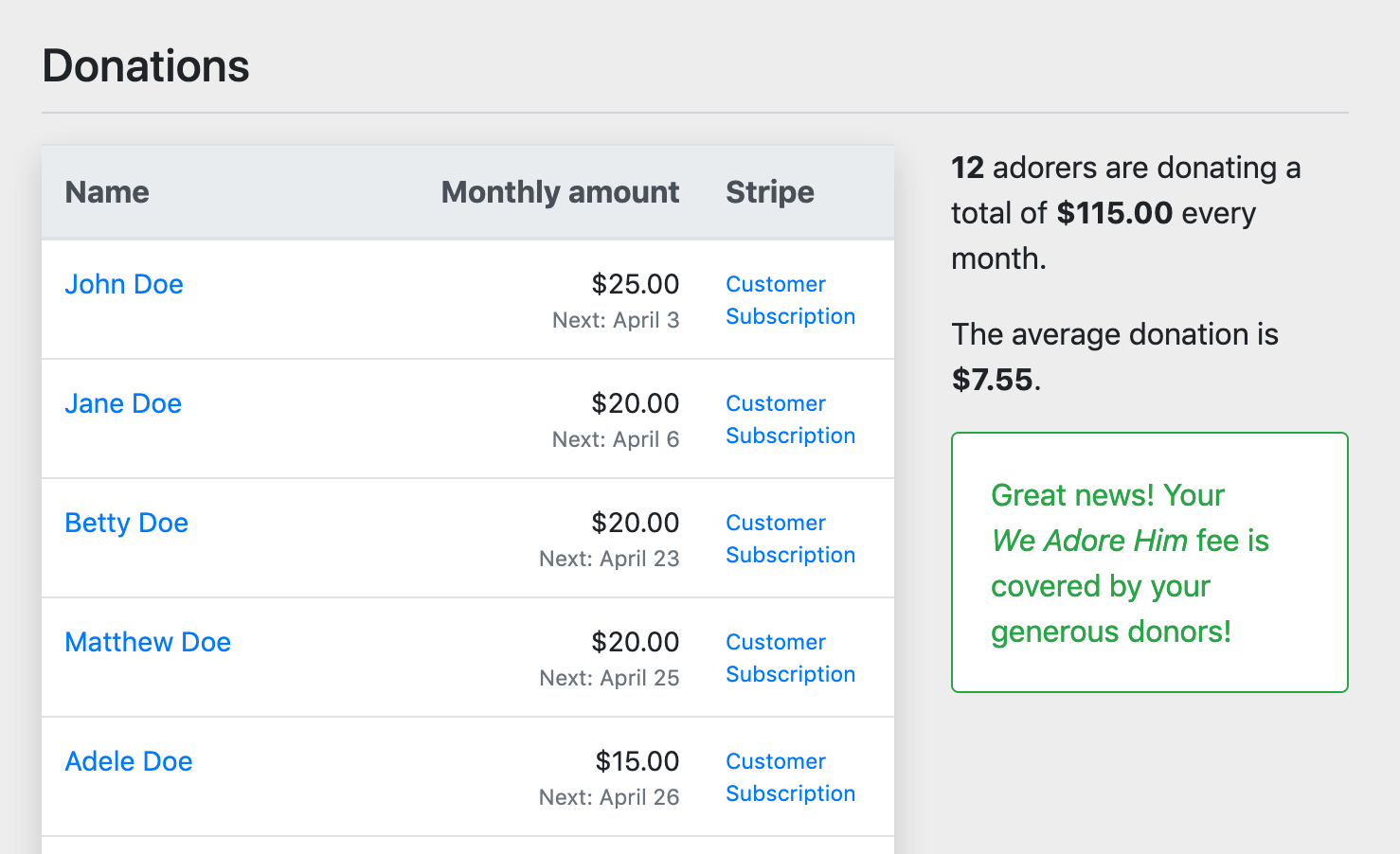 We Adore Him was built to increase devotion to Jesus in the Blessed Sacrament... and we didn't want to let the ongoing cost of the application to be prohibitive for any chapel. This barrier is removed when you allow your adorers the option to give a little something each month, effortlessly.