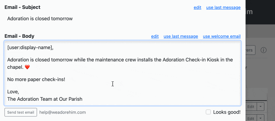 You can also preview the guest check-in email at Admin » Settings » Attendance.