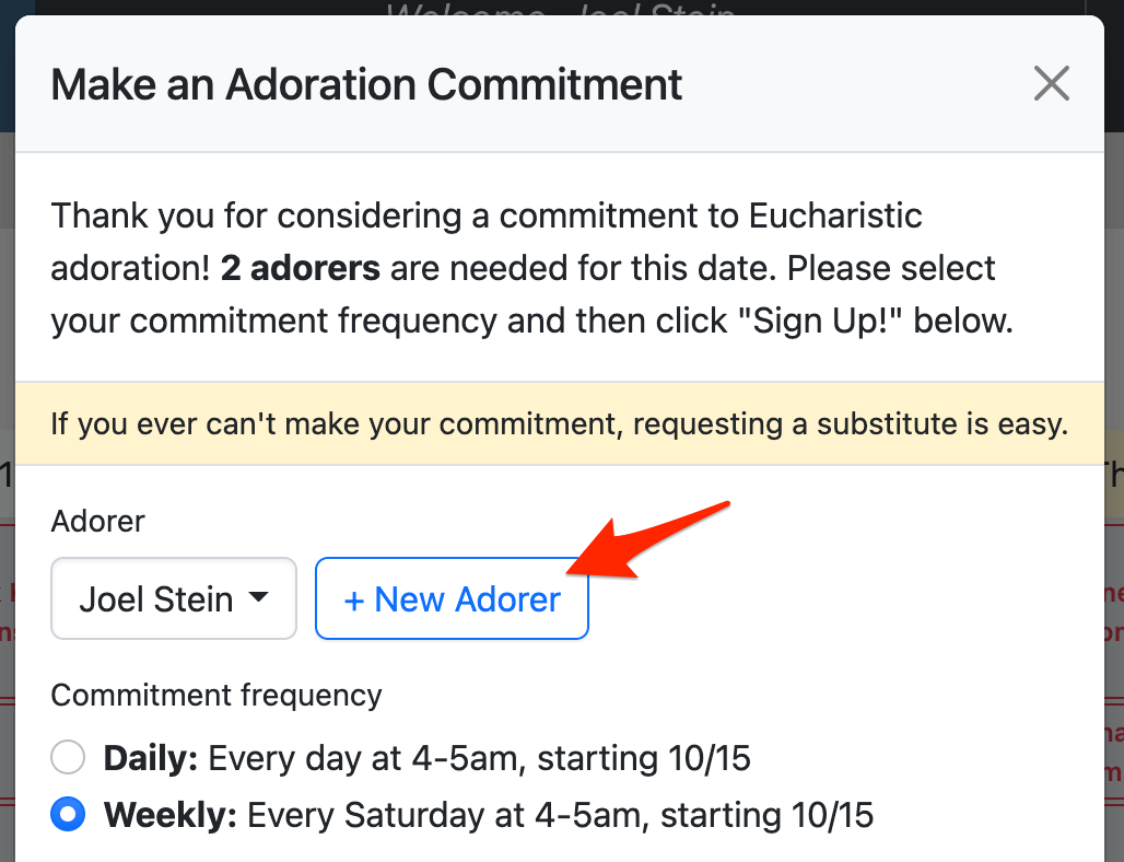 When an administrator or captain needs to create a new adorer account with an adoration commitment, it requires several steps: