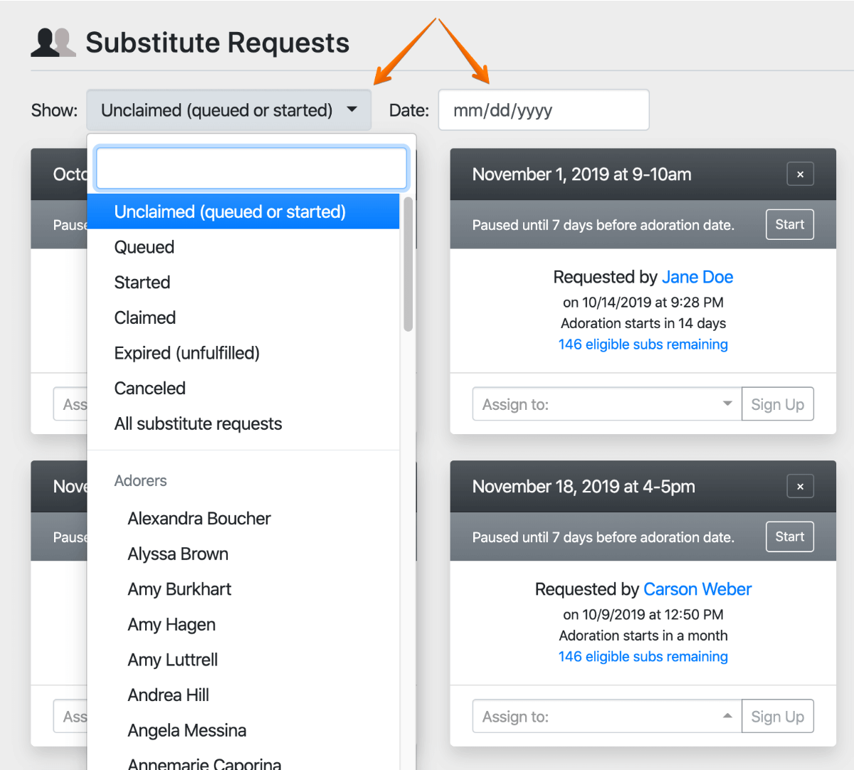 We've also allowed you to choose a specific adorer to see that particular adorer's substitute requests.