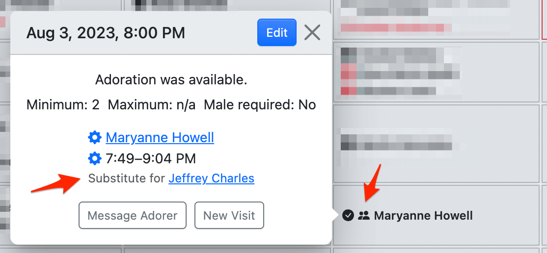 Do you ever wonder why the regularly scheduled adorer's name is missing from the Schedule page visit history?